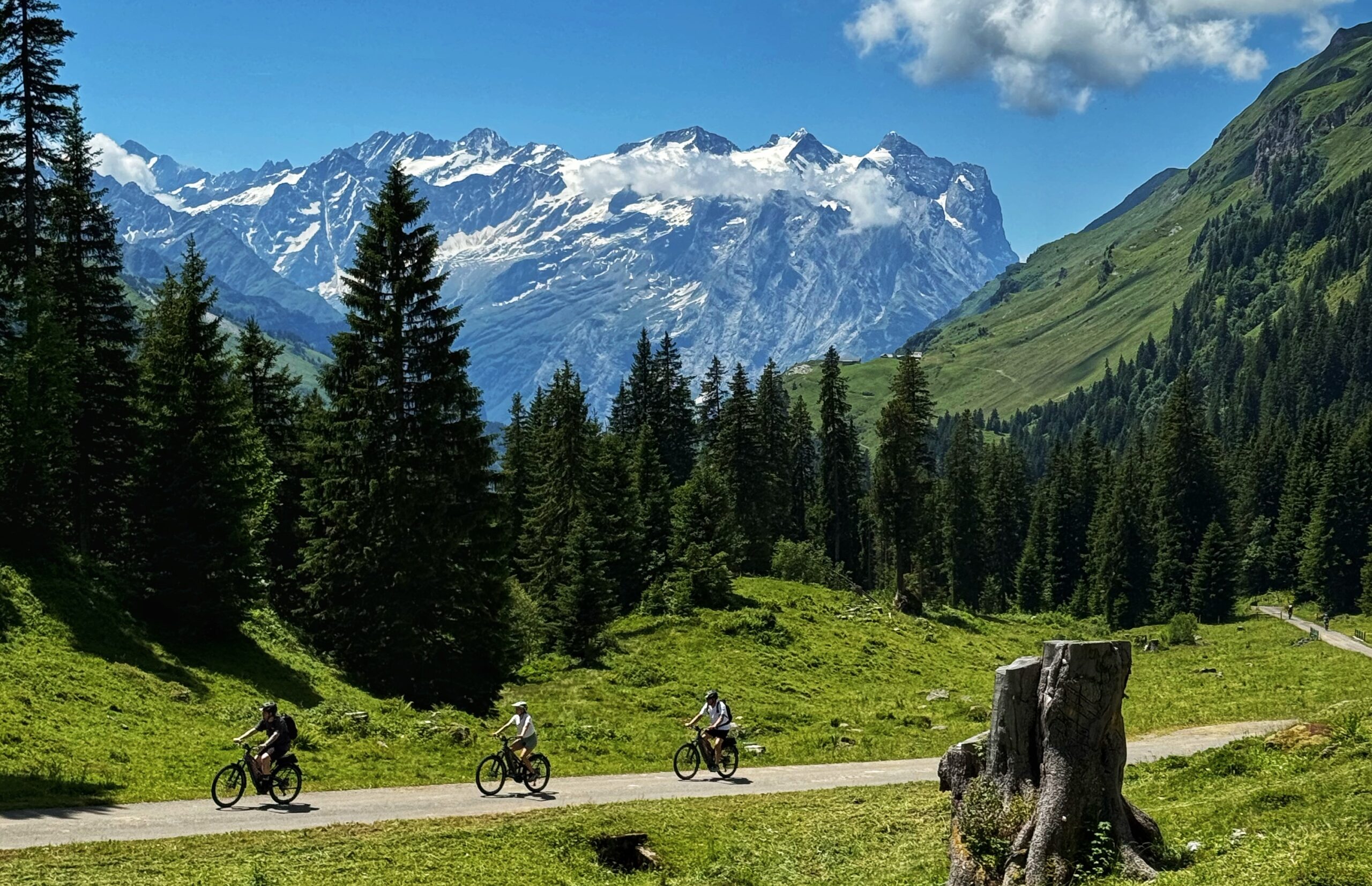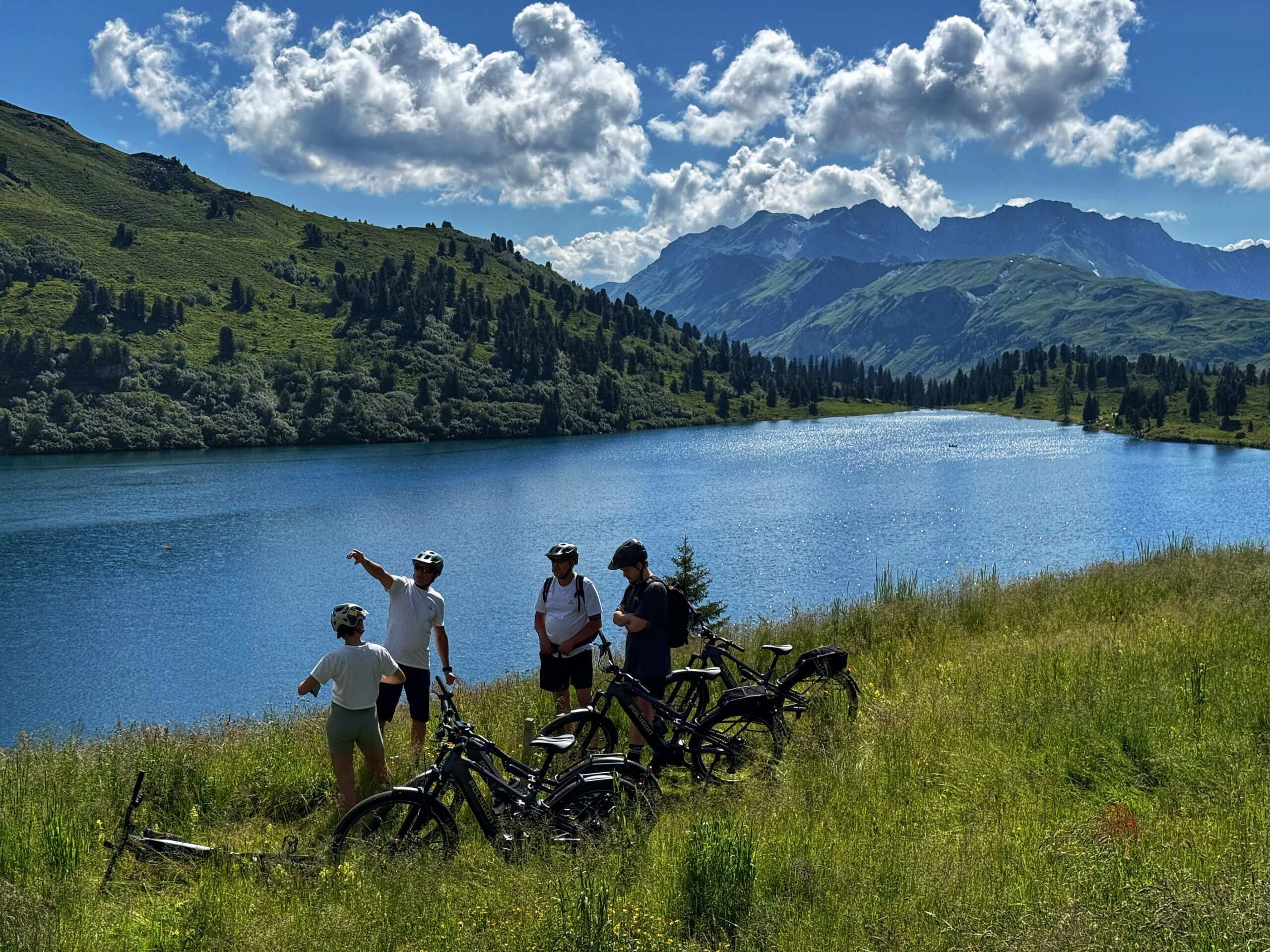 Join our carefully planned e-bike tours for a relaxing outdoor adventure in the Swiss Alps, surrounded by breathtaking valleys and mountains.