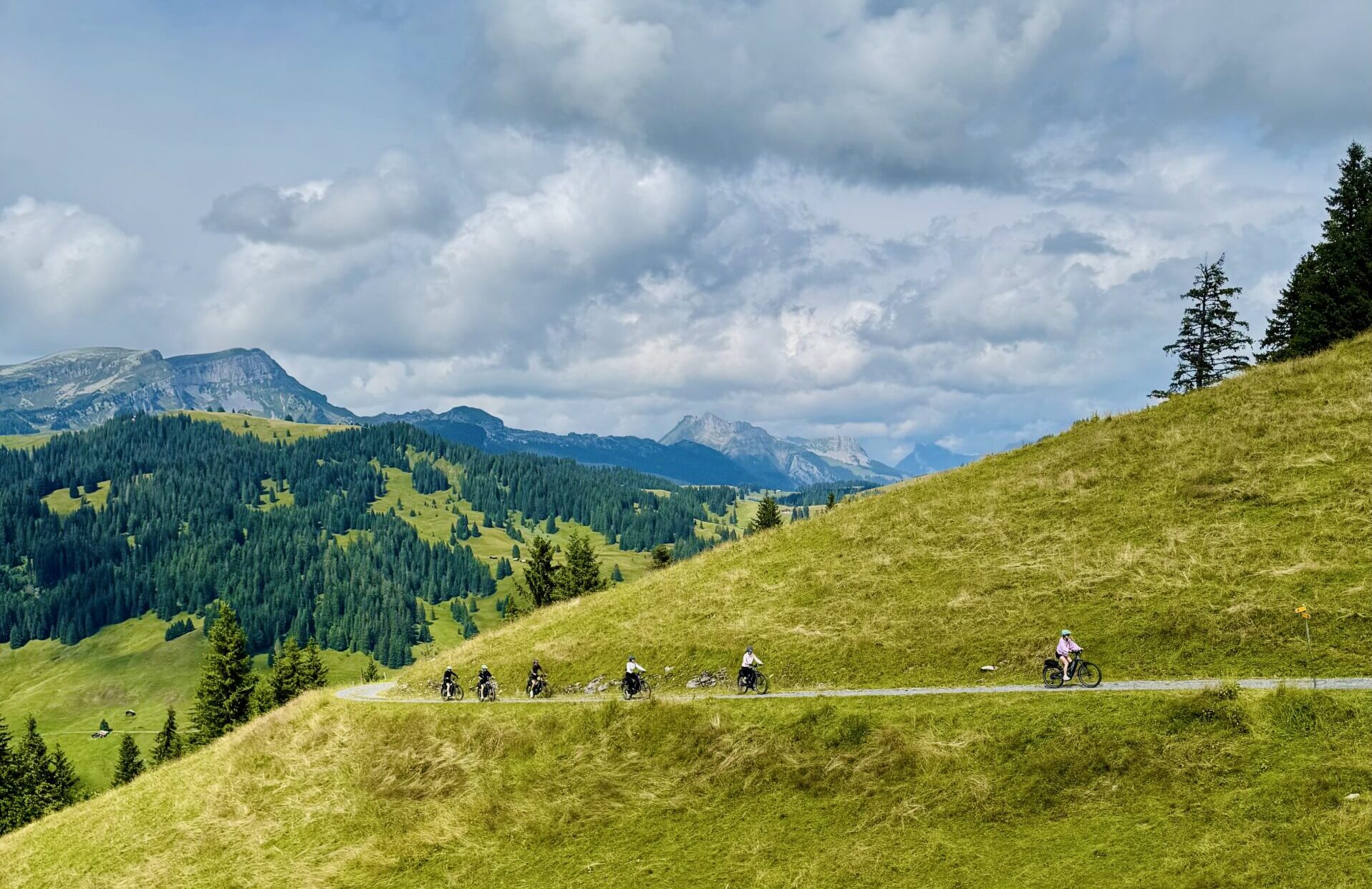 Recharged, we ride back down through the valley, where every turn reveals new perspectives of forests, pastures and quiet alpine meadows. For those interested, there’s also the chance to peek into a nearby Alphorn workshop, where Switzerland’s traditional horns are crafted (if open). It’s a beautiful glimpse into local culture and one of the more unique activities in the region.